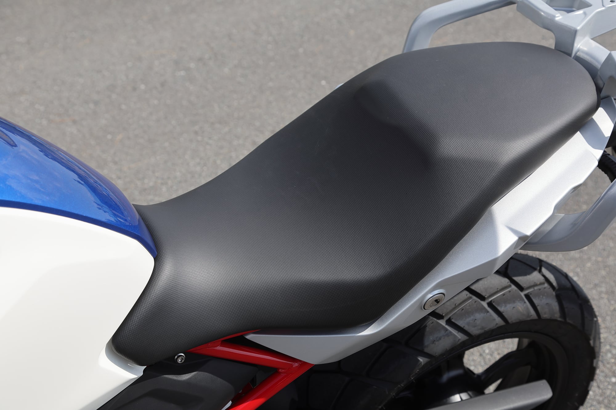 - シート高は835㎜と同排気量のマシンの中では高いけれど、アドベンチャーツアラーとしては低い部類に入る。フラットなタンデムシートは積載にも有利