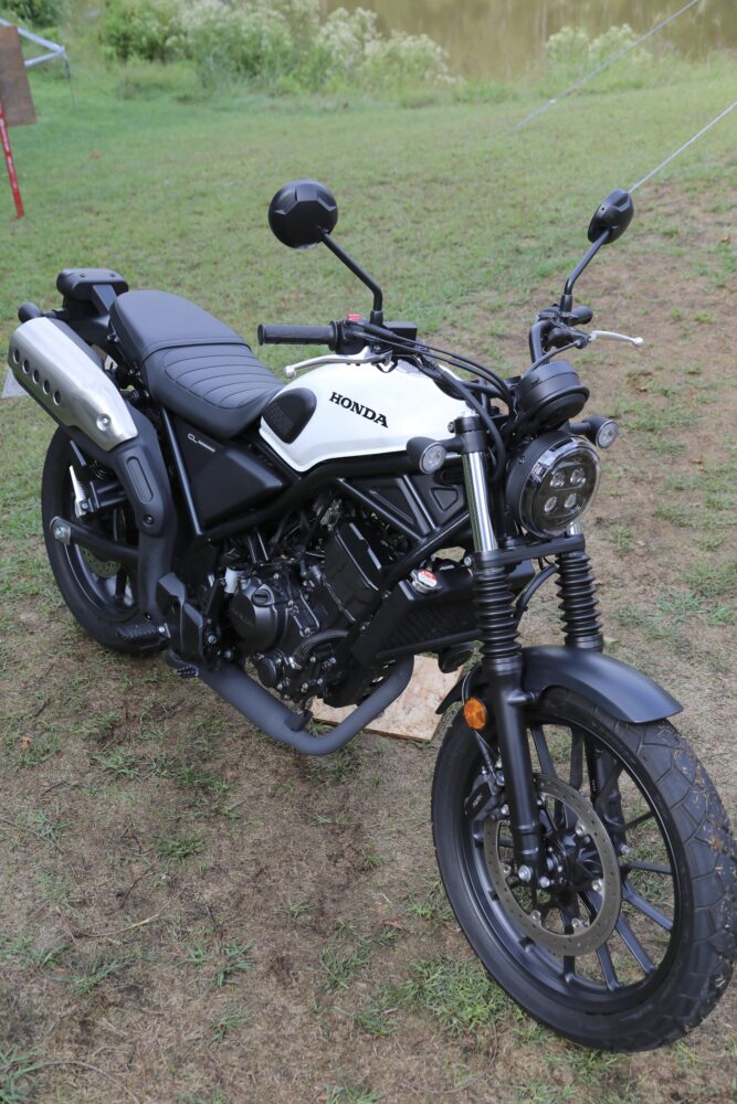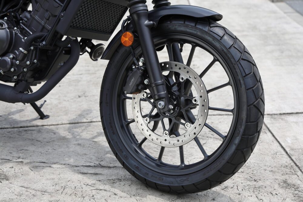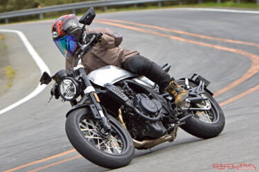 たとえばメインフレームはレブル250と共通だが、シート周辺のサブフレームは専用設計となっていたり、レブル250は前後16インチホイールだけど、CL250はフロント19・リヤ17インチと車輪も大きい。ストリートから郊外まで、ヒラリと気軽に駆け抜けられるフットワークの軽さが強調されている1台なのだ。