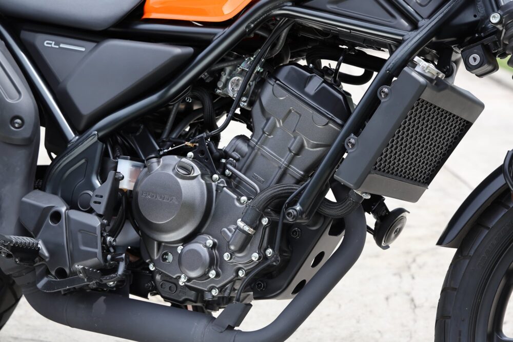 高い人気を誇るレブル250と共通パーツを多く持つCL250。レブル250をベースとし、エンジンも4ストローク水冷DOHC4バルブ単気筒を採用しているが、カムシャフト部分はCRF250Lのモノを転用し、より低中回転域のトルクを出してストリートでの使いやすさを強めた設定にするなど、CL250“らしさ”を造るこだわりは随所にある。