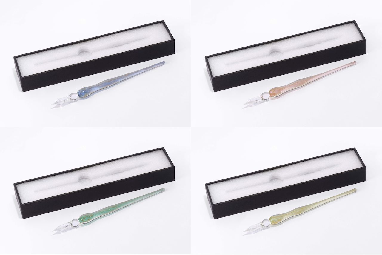 きらきら輝くラメが美しい、ハンドメイドのガラスペンが新登場! 水洗いでサッと簡単にインキが落ちるため色替えもスムーズ。気分やシーンに合わせて様々なインキを気軽に使用することができる。ガラス素材ならではの繊細な透明感と、心地よい書き味を楽しもう。