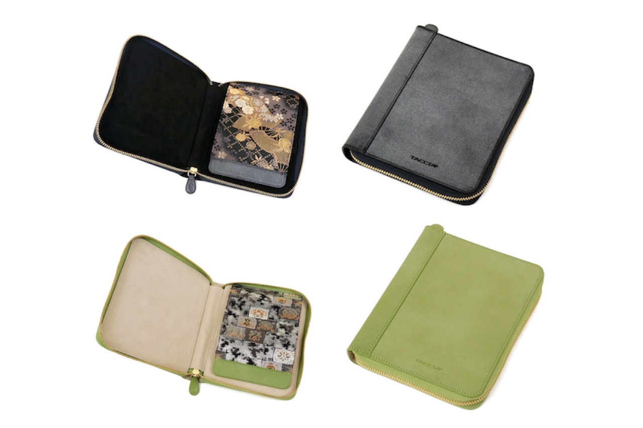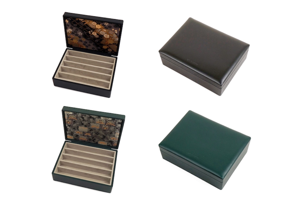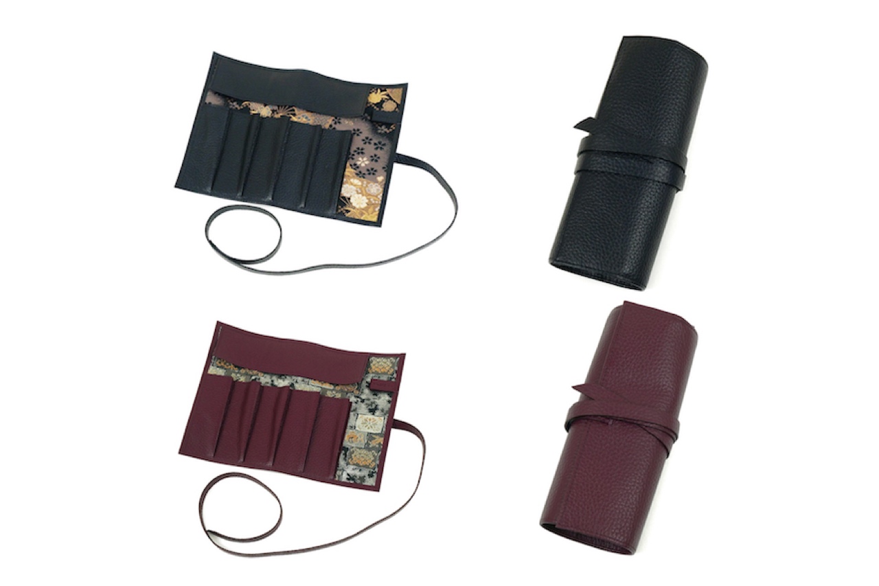 「金襴×レザーシリーズ」は「ロールペンケース」「ラウンドジッパーペンケース」「コレクションボックス」の3種類展開から選べる。永くお使いいただけるよう、アイテムごとに革の仕上げ方法を変えている。