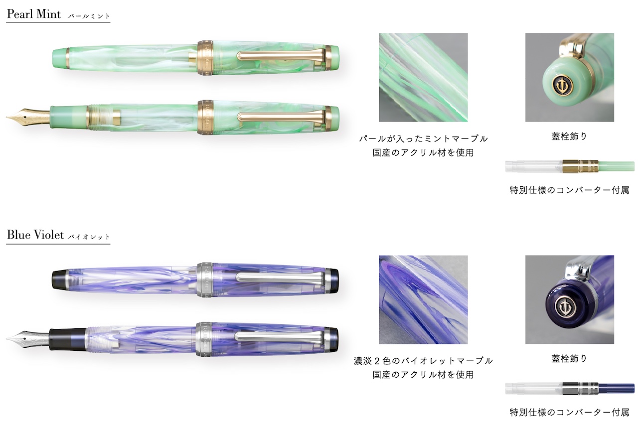また、透明ベースの蓋・胴は内部が見える仕様のため、本体カラーに合わせた特別仕様のコンバーターをご用意。色の組み合わせの違和感なく使用できる。
