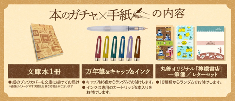 「本のガチャ®」は、テーマごとにhonto書店員が選んだ本を、タイトルを伏せてランダムに販売する、hontoの人気企画。このたび「Fonte」が採用された「本のガチャ®×手紙 初めての万年筆セット」は、honto書店員が約6万タイトルの文庫から「手紙」をテーマに選書し、万年筆とインクと一筆箋(もしくはレターセット)をセットにした商品だ。