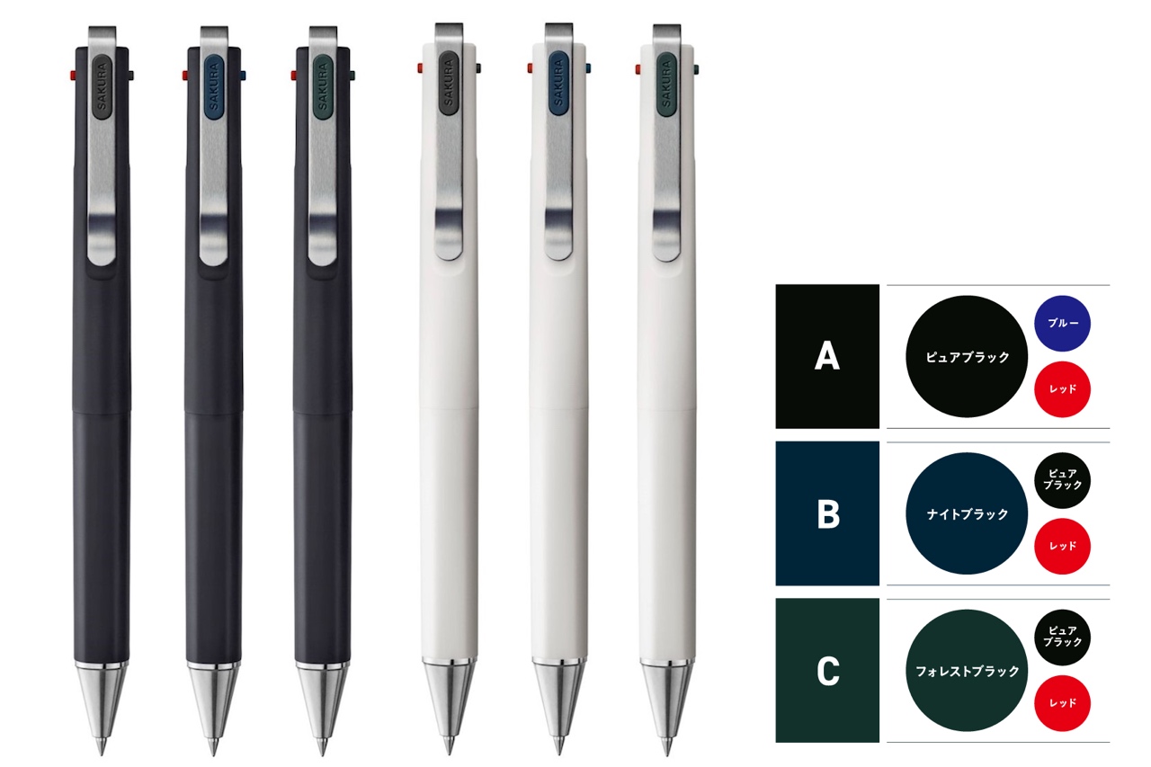 インキ組み合わせ:3種類/A(ピュアブラック、ブルー、レッド)、B(ナイトブラック、ピュアブラック、レッド)、C(フォレストブラック、ピュアブラック、レッド)