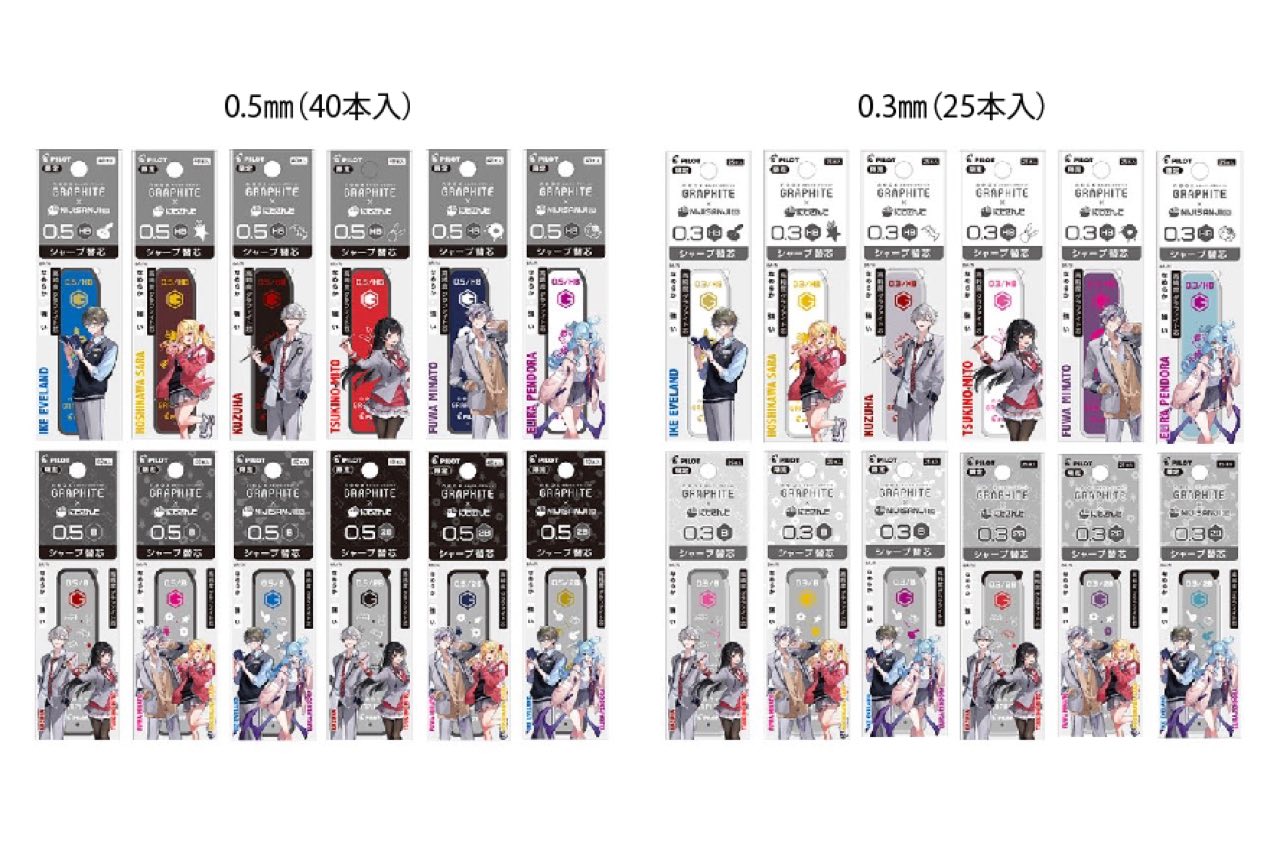 今回のコラボでは、シャープ替芯「ネオックス・グラファイト」、シャープペンシル「ドクターグリップ クラシック」、クリアファイルの3アイテムを、数量限定で発売。「にじさんじ」のバーチャルライバー(※)である「月ノ美兎(つきのみと)」、「葛葉(くずは)」、「不破湊(ふわみなと)」、「星川サラ(ほしかわさら)」、「アイク・イーヴランド」、「エリーラ ペンドラ」の6名を起用し、“グラファイト学校に通う生徒たち”という設定で、学生服を着た完全描き下ろしのオリジナルデザインとなる。