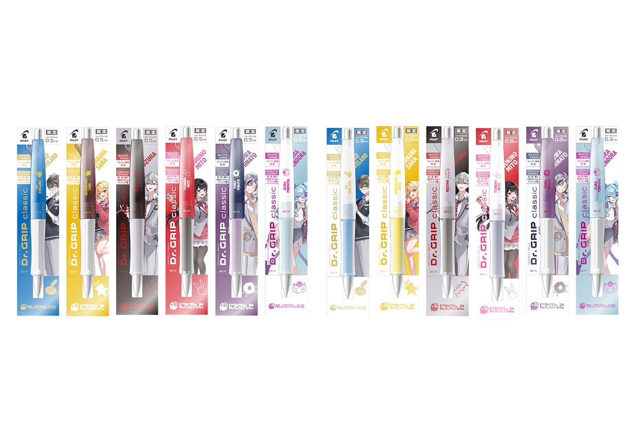 「ネオックス・グラファイト」のケースと「ドクターグリップ クラシック」のボディには、6名それぞれのオリジナルモチーフをデザインし、各パッケージには、描き下ろしのバーチャルライバーをデザイン。クリアファイルには、オリジナルイラストの中に今回のコラボアイテムである「ネオックス・グラファイト」や「ドクターグリップ クラシック」が描かれている。