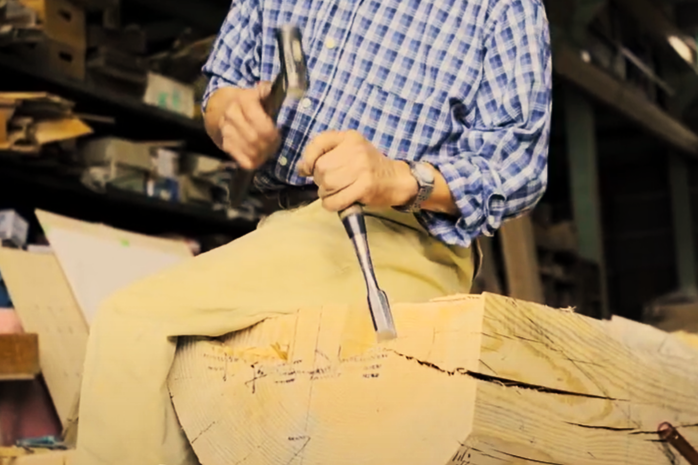大工とは、木造建造物の建築と修理を担える職人のこと。彼らの作業工程は、建造物の設計図に従いながら、作業所で事前に木材に行う「加工」と、現場で行う「組立」に大きく分かれている。