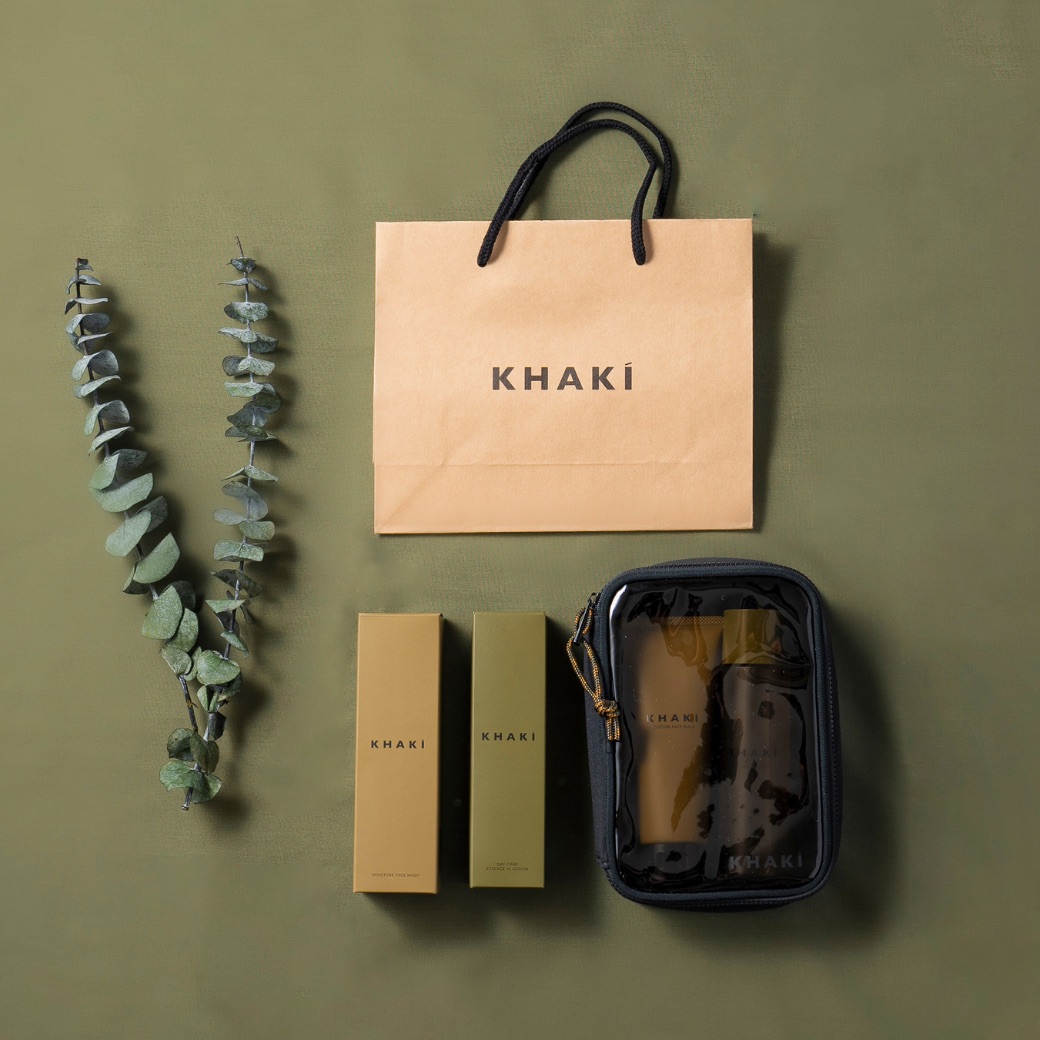 KHAKIのスキンケアはシンプルなカーキ色のパッケージデザインが人気。また、こだわりの高保湿・低刺激成分もギフトに選ばれる理由で、乾燥肌や敏感肌に悩むメンズにもぴったり。