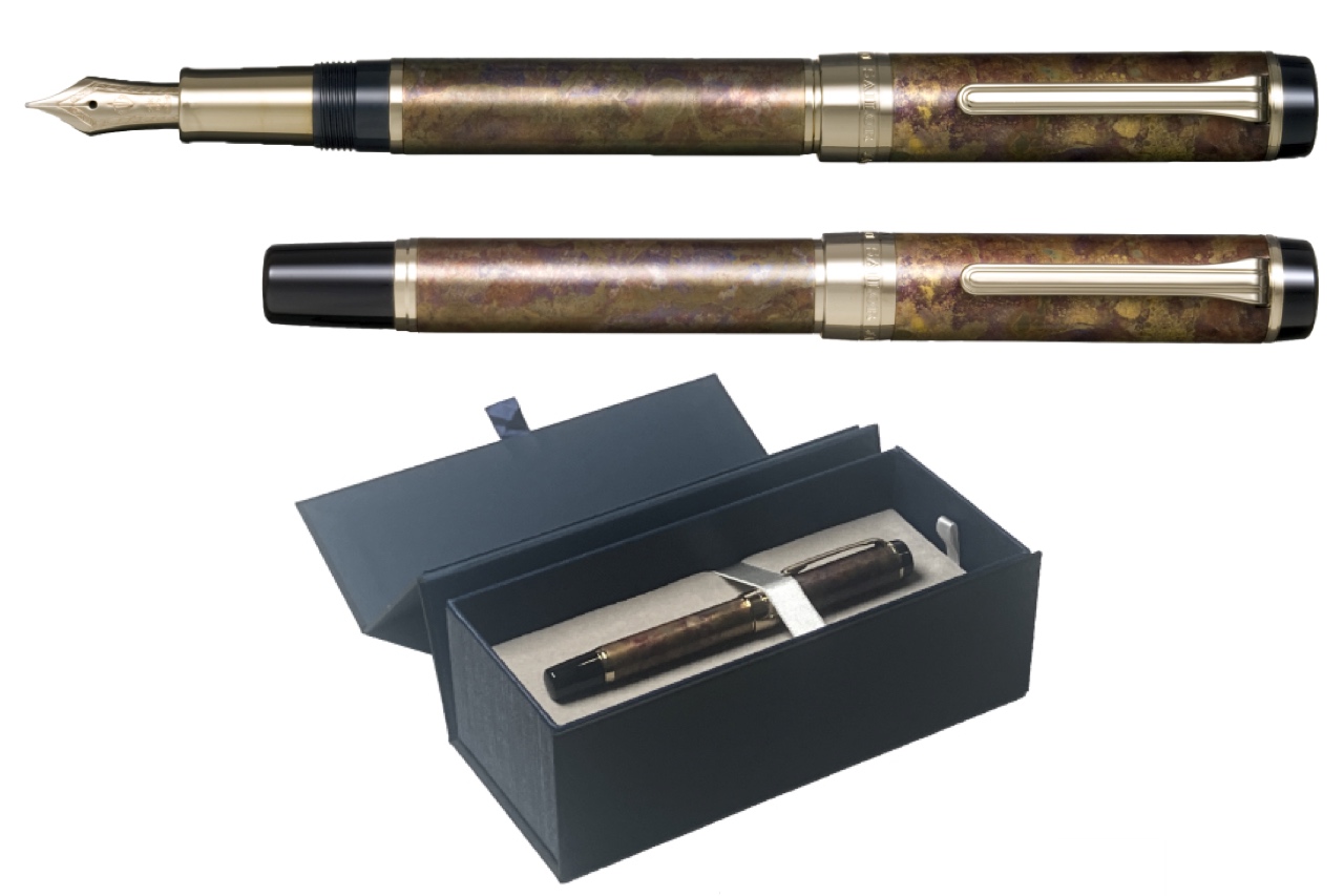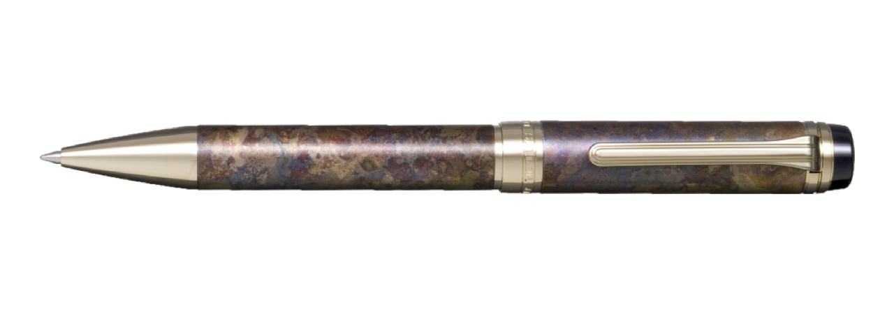 蓋・胴:真鍮/金属着色加工(斑紋孔雀色仕上げ)