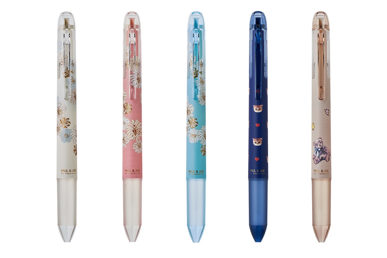 今回のコラボレーションでは、「見て楽しい、書いて楽しい、持っていることが幸せ」をコンセプトに、「PAUL & JOE」のアイコニックな“クリザンテーム(西洋菊の一種)”や猫のヌネット、人気のテディベアをボディにデザインした。