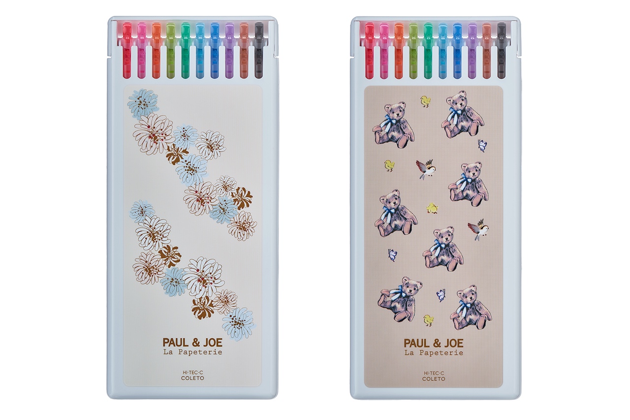 今回で2回目となるコラボレーションは、自分で好きなボディとレフィルを選べる4色タイプの多色・多機能ペン『ハイテックCコレト PAUL & JOE La Papeterie コラボ』と専用レフィル『ハイテックCコレト専用ケース入りレフィル10色セット PAUL & JOE La Papeterie コラボ』、オリジナルノート『カバー付きA5ノート PAUL & JOE La Papeterie コラボ』をラインアップした。