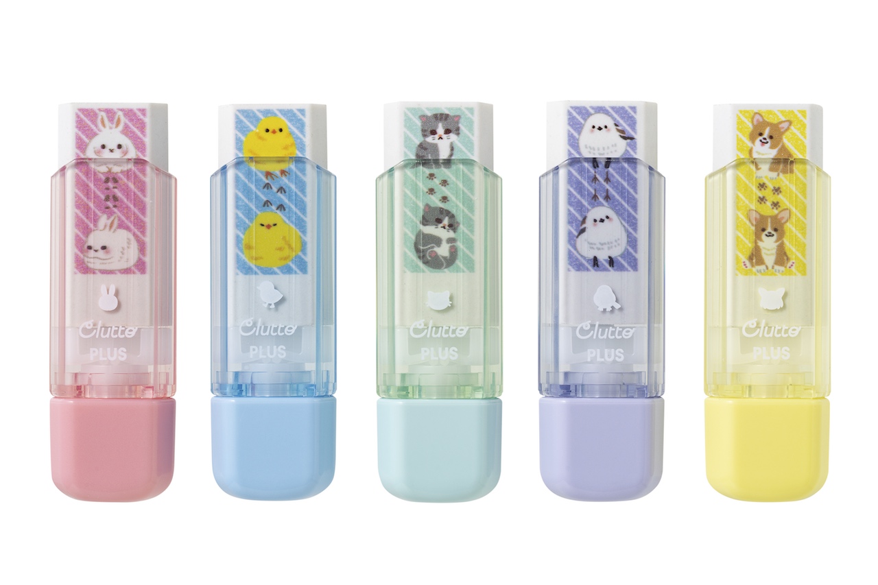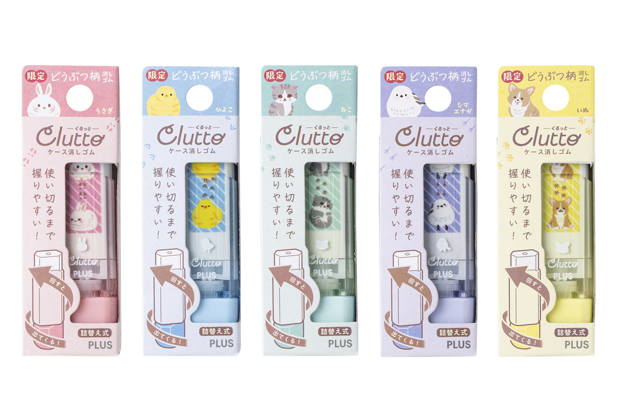 今回は、思わず笑顔になってしまう、ぽってり愛らしい5種類の動物を消しゴム樹脂にプリント。透明のケースにも動物のシルエットがワンポイントで入っており、使い終わった後も中身の消しゴムを入れ替えて、ずっとお気に入りとして使用することができる。
