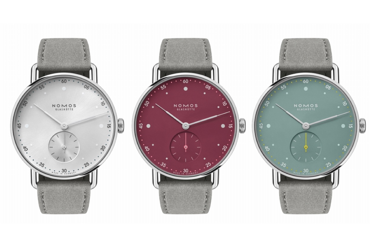 このエキサイティングな3カラーのメトロは女性だけでなく、スマートな腕周りを好む男性にも似合う。「メトロ 33」はノモスの自社製キャリバー、アルファを搭載。アルファは一番多く生産され、最も高く評価されている手巻きのムーブメントだ。