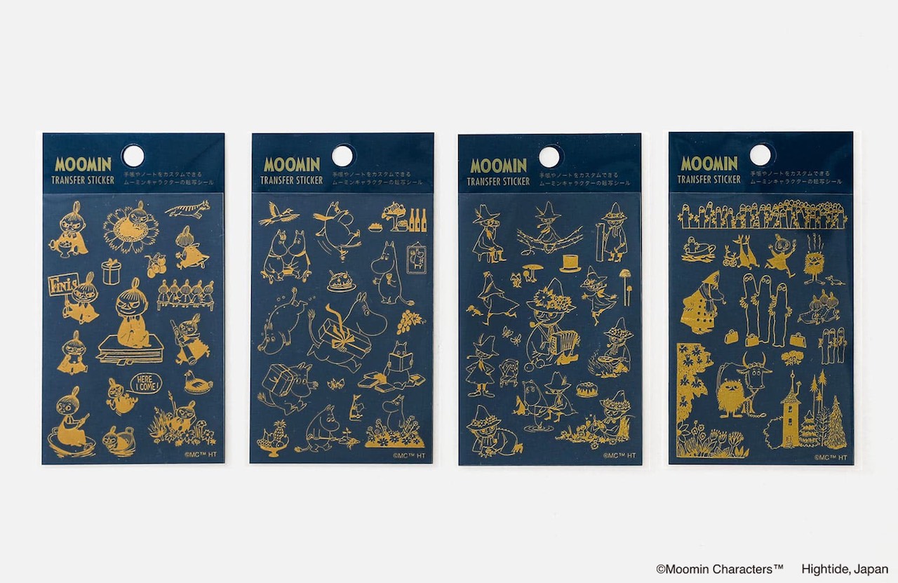 ムーミンキャラクターたちがゴールド箔の転写シールに。手帳やノート、メッセージカードを華やかに彩る。本革や合成皮革、プラスチックといった紙以外の素材にも貼り付けが可能なので、カスタマイズを幅広く楽しむことができる。