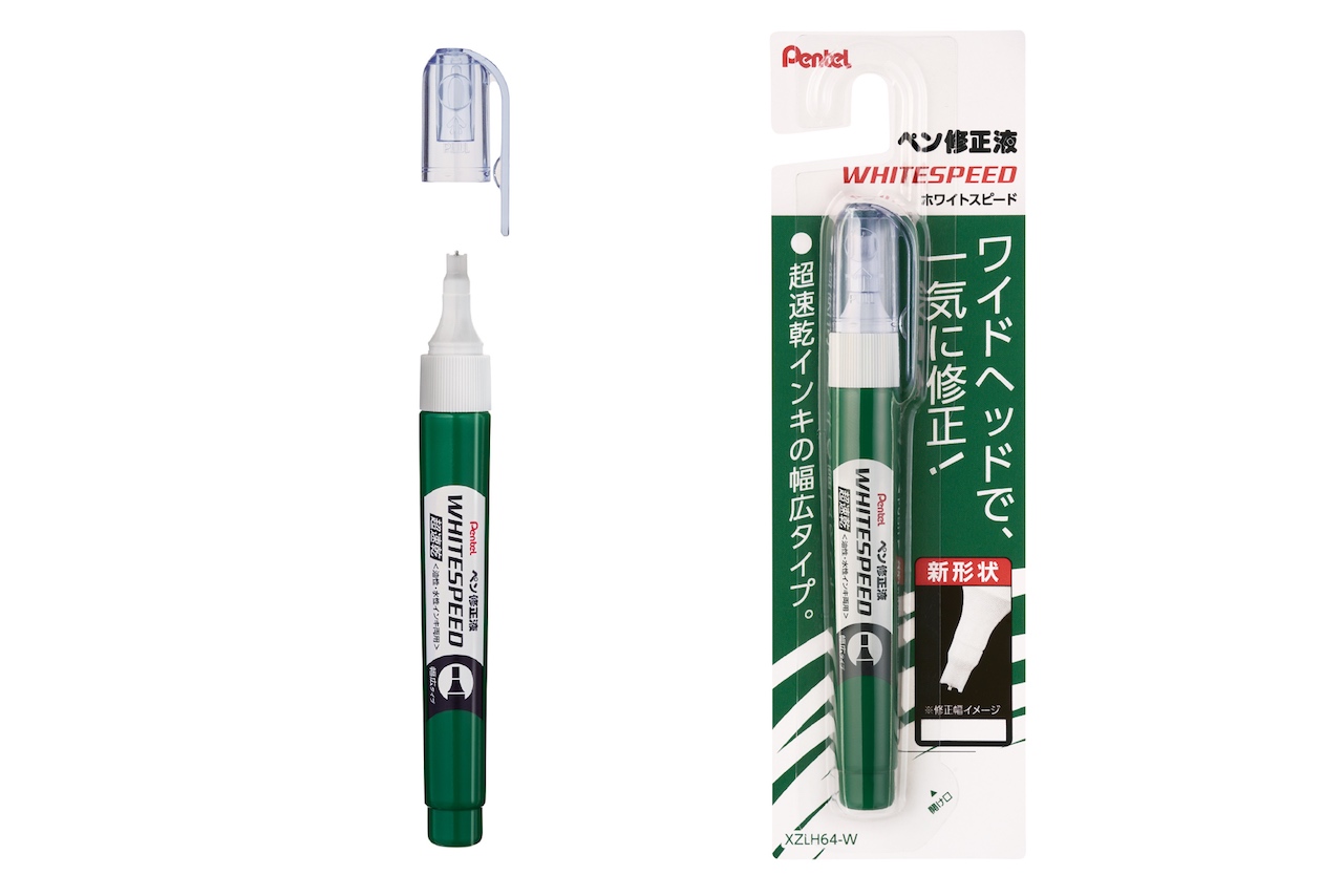 「ホワイトスピード」は、修正液の柔軟さと、修正テープの幅広さを併せ持つ修正ペンだ。1983年にペンタッチ式ボトル型修正液を発売し、2023年で発売40周年の歴史を持つぺんてるが、17年ぶりの新製品として開発した。