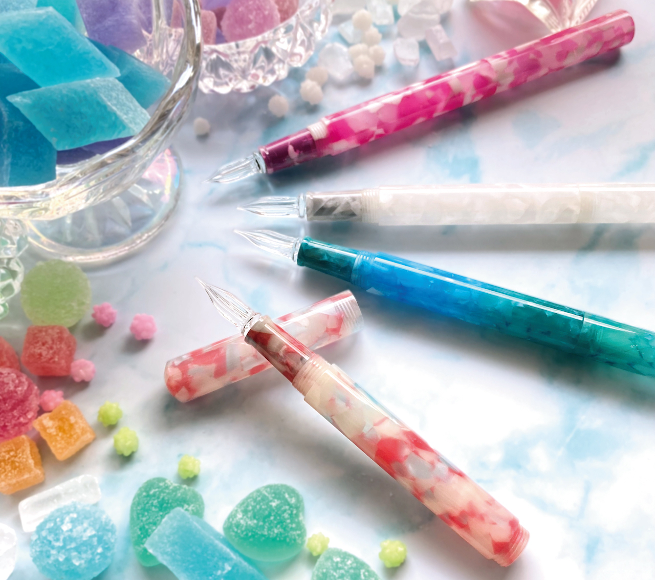 大好評「ギター ガラスペン オーロラ キャップ付」のロングタイプが新登場! キュートな4種のジェリーカラー。甘くてメロウな気分になれるガラスペン。キャップ付なので、持ち運びも安心。専用箱入りでギフトにもおすすめだ。