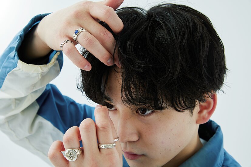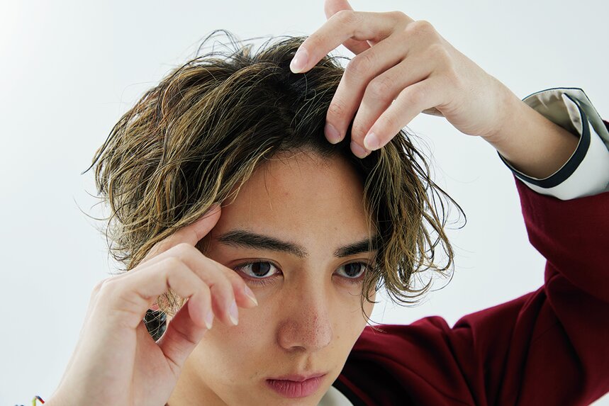 柔らかめのワックスかバームを髪にもみ込む。前髪は根元を持ち上げながら毛先をくずす。