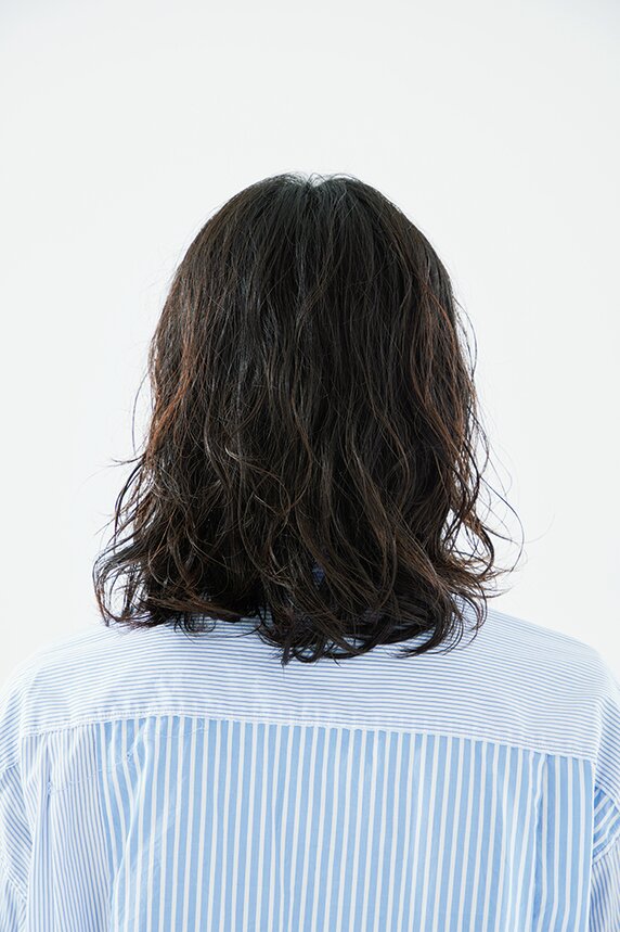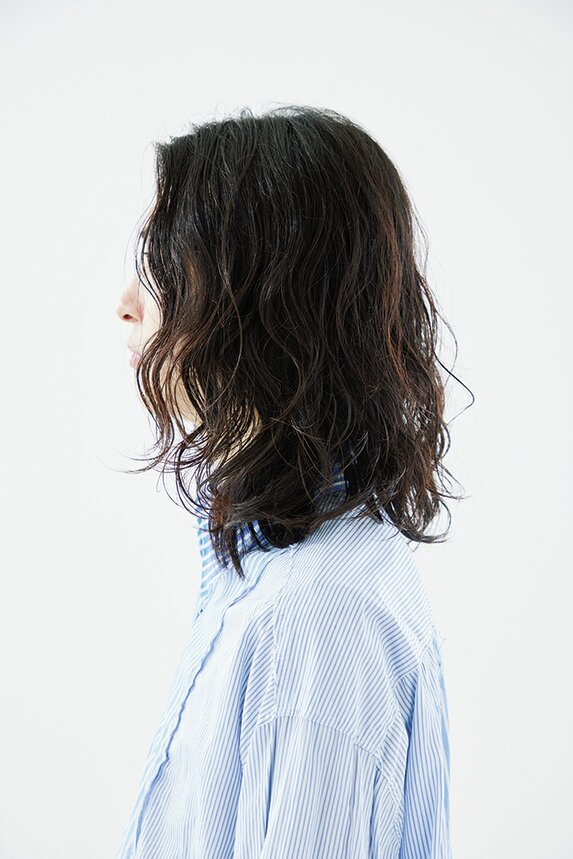 ランダムな動きの出る無造作パーマで、ガラッとイメチェン。サイドとえり足にフレアなシルエットが出るためさまざまな骨格に合わせやすく、家での再現性も高い。