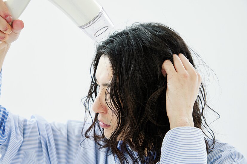 毛先は半乾き程度に残し、根元を中心にドライ。オイルは根元を避け、内側までしっかり付ける。