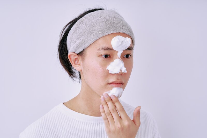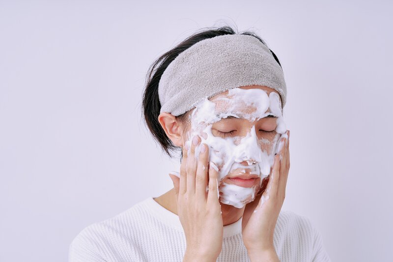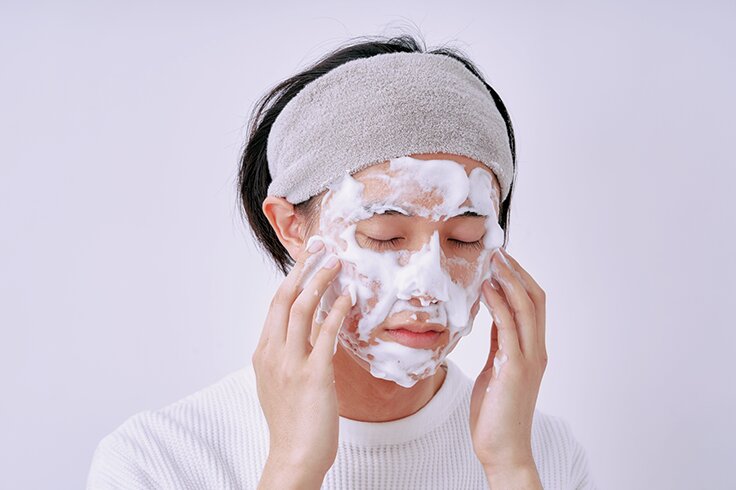 泡をのせてパックして待つという“泡パック”、もしやっていたら注意。一見よさそうで実は皮脂を取りすぎてしまう原因に。洗ったらすぐ流すのを基本にぬるま湯で刺激レスに。