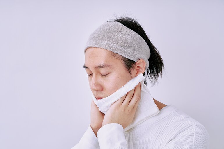 ホットタオルの蒸気を利用して洗い残しがちな耳まわりや首元を拭き取る。ツボも多い部分なのですごく気持ちがいいもの。