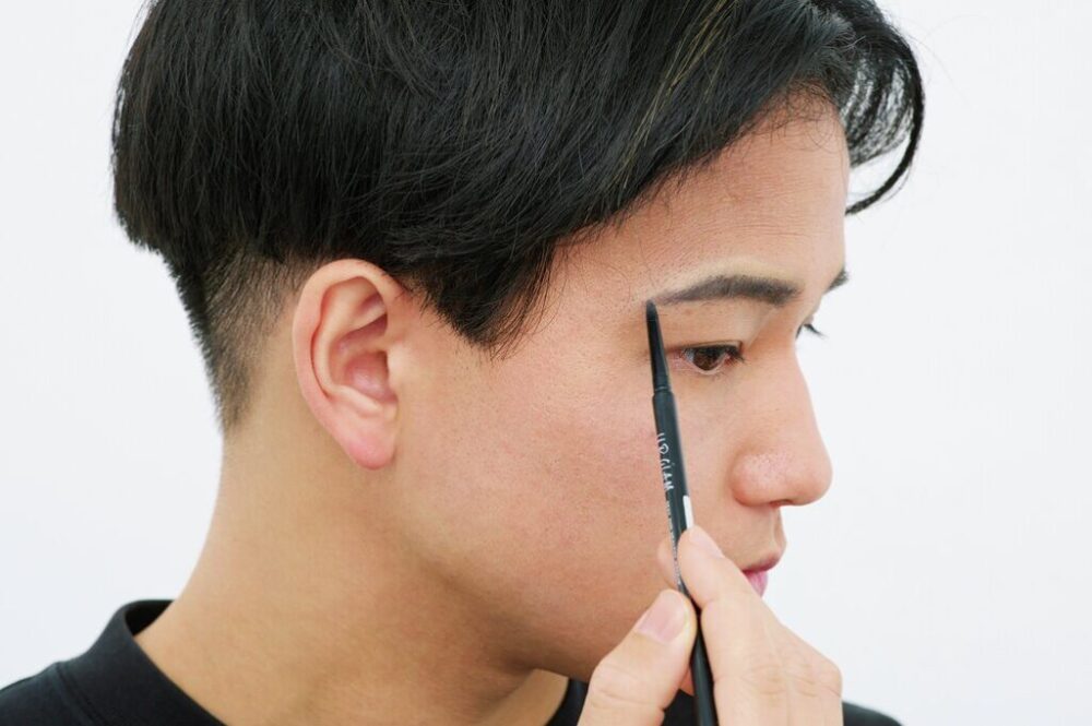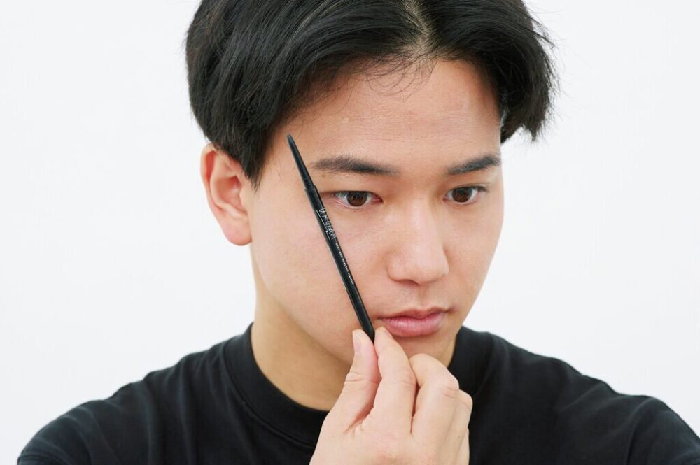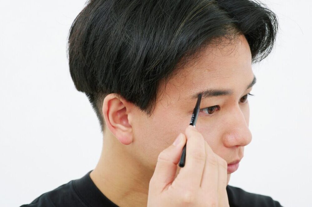 メンズに多い三角形の眉。そのままでナチュラルな顔もありだし、眉頭を少し強めると一気に印象が激変! カッコよさの振り幅を広げることが、自分を知り、魅力を高めてくれます。自分はこうだからと決め込まず、メイクを自由に楽しんでみてください!