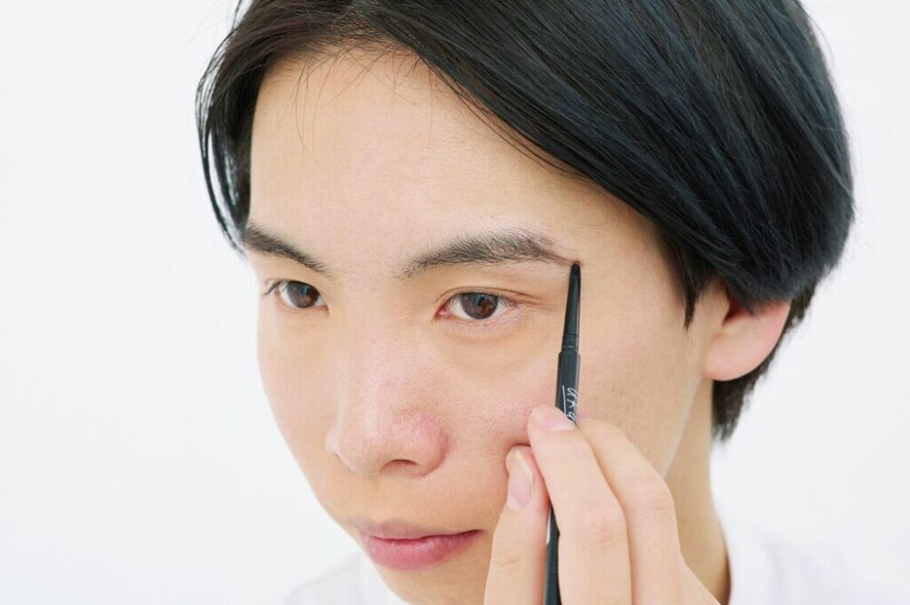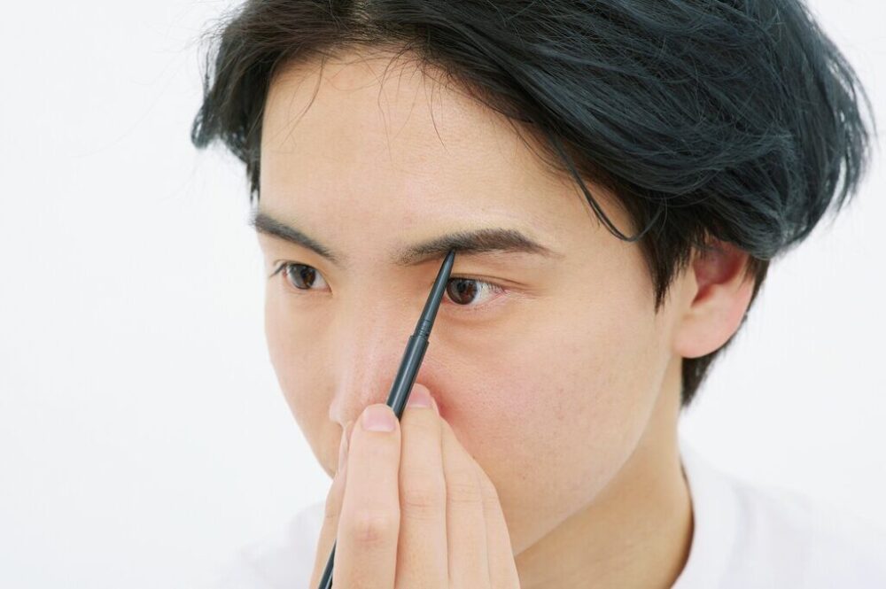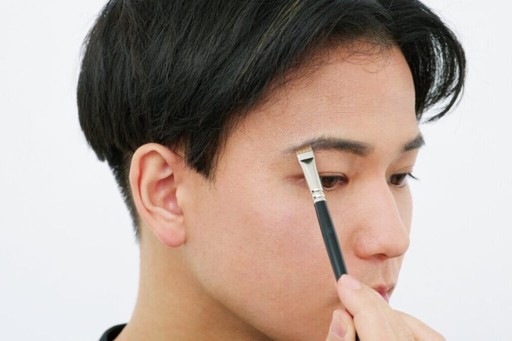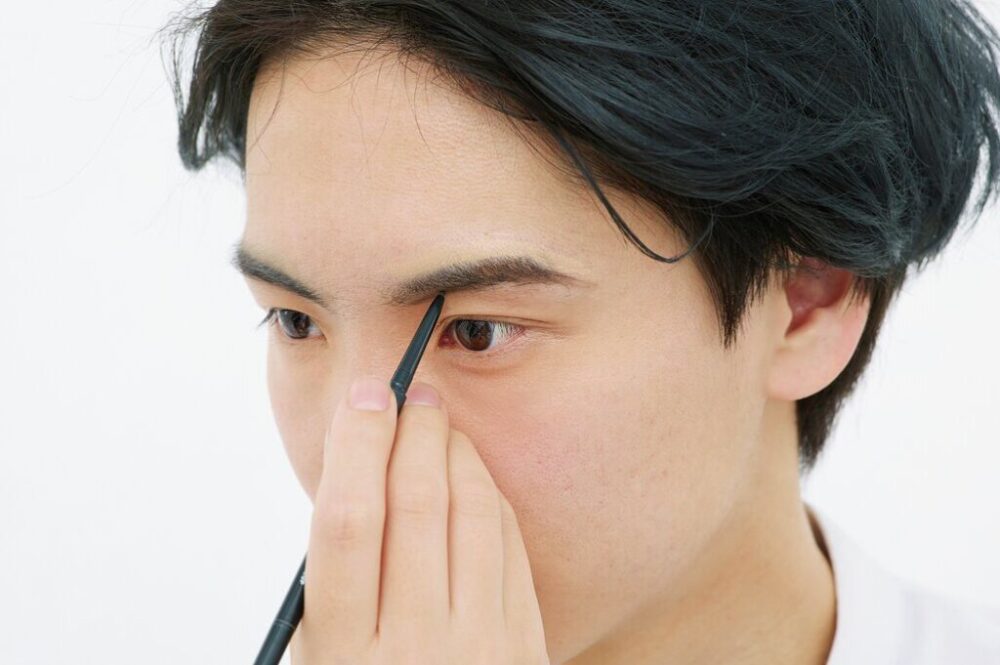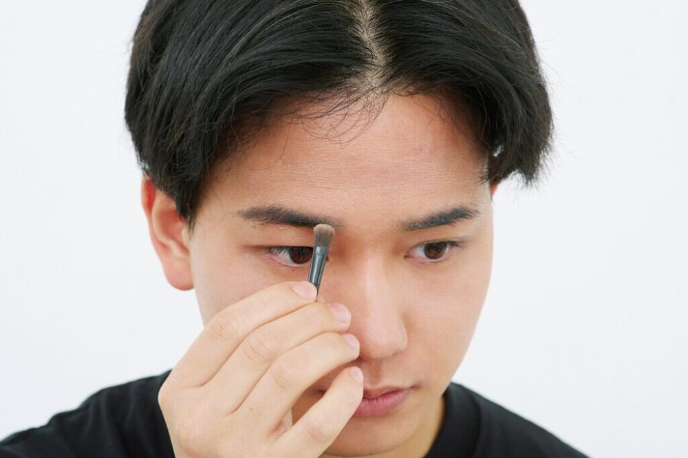無愛想に見えがちな、眉頭が濃い「四角形」タイプは濃淡を調整して爽やかな顔を目指す