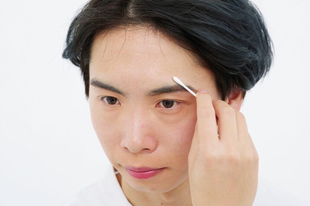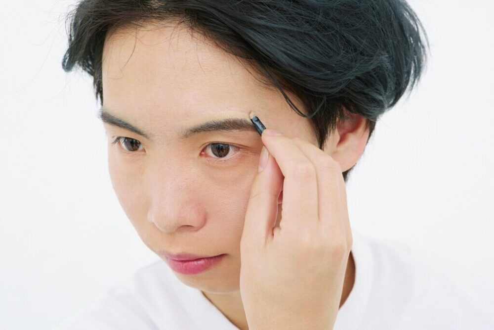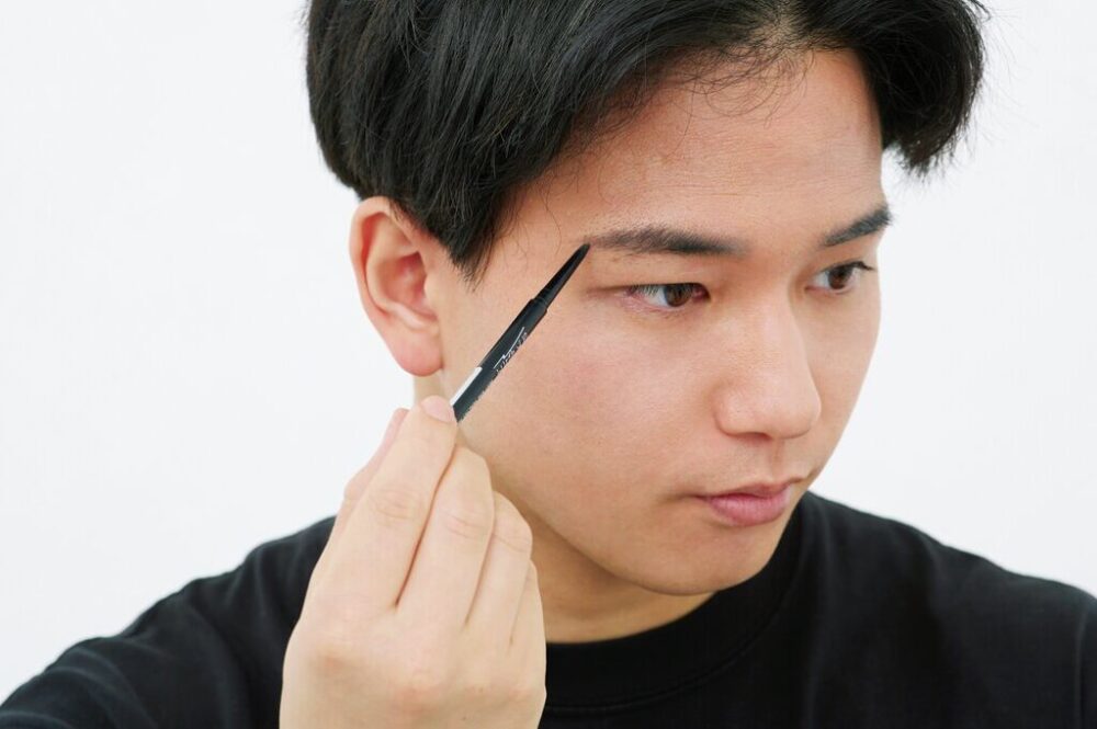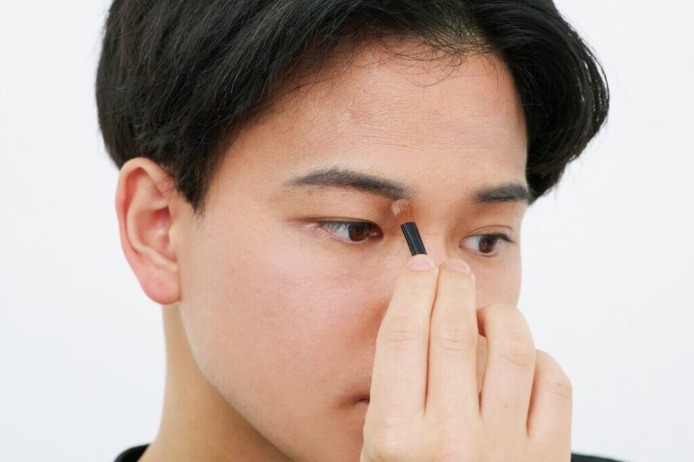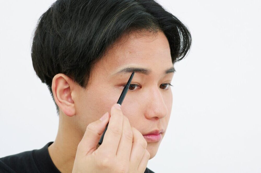 無愛想に見えがちな、眉頭が濃い「四角形」タイプは濃淡を調整して爽やかな顔を目指す