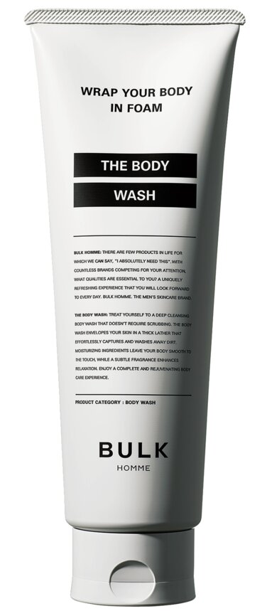 やさしくこすっても濃密な泡が、しっかりと汚れやニオイを落とす。同時に保湿ケアもできる、男の肌を考えつくしたアイテムだ。ザ ボディウォッシュ[250g]¥2,750/バルクオム