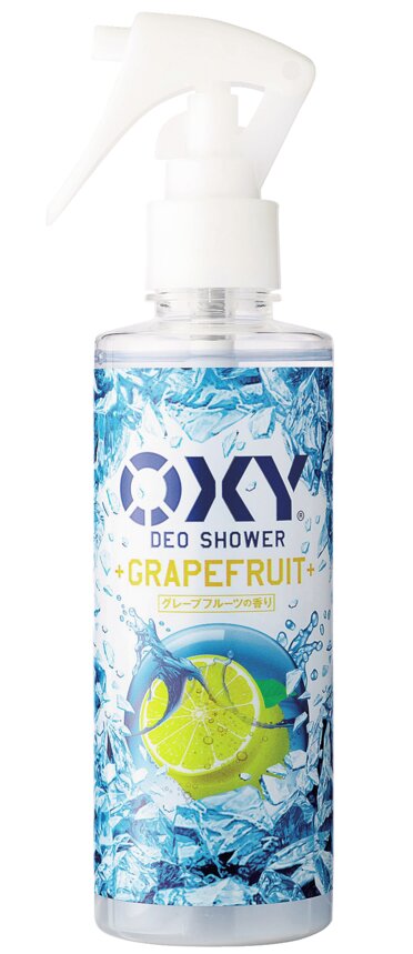 デオシャワーで速攻クールダウン。ニオイの原因になるアブラを吸収し、肌をサラッとさせる! OXY 冷却デオシャワー グレープフルーツの香り[200ml]¥715/ロート製薬