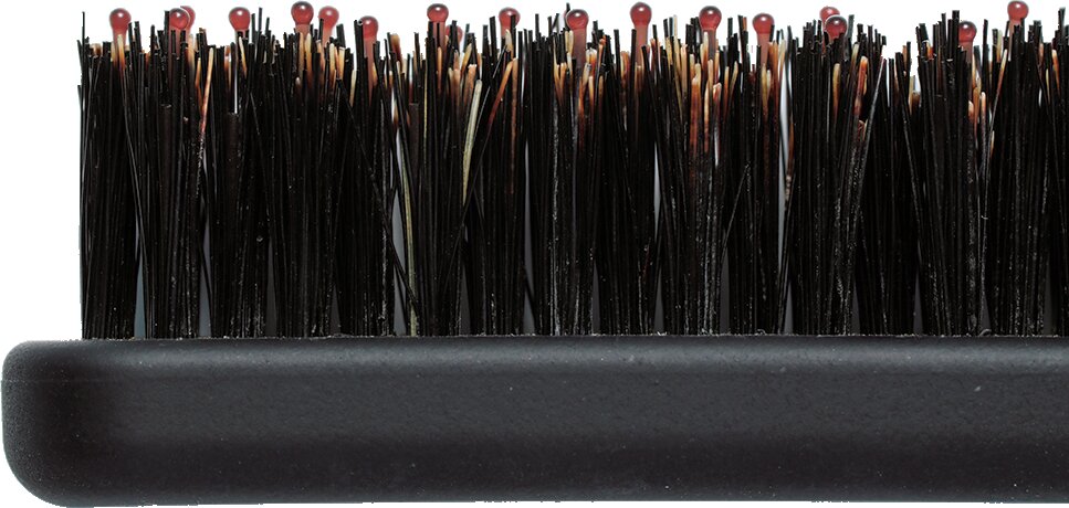 天然毛の中心にナイロン毛の長さを変えて配置。摩擦によるダメージを軽減すると共に、頭皮をやさしく刺激して健やかな髪に。