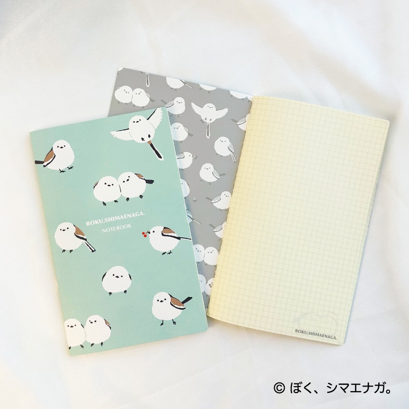 表紙はもちろん、中紙にも愛らしいデザインのシマエナガが描かれたスリムノート。中紙はほのかに薄い黄色に5mm方眼入りで、64ページ。