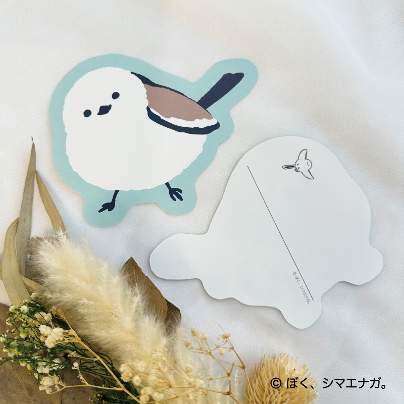 「ぼく、シマエナガ。ステーショナリー」ダイカットカード