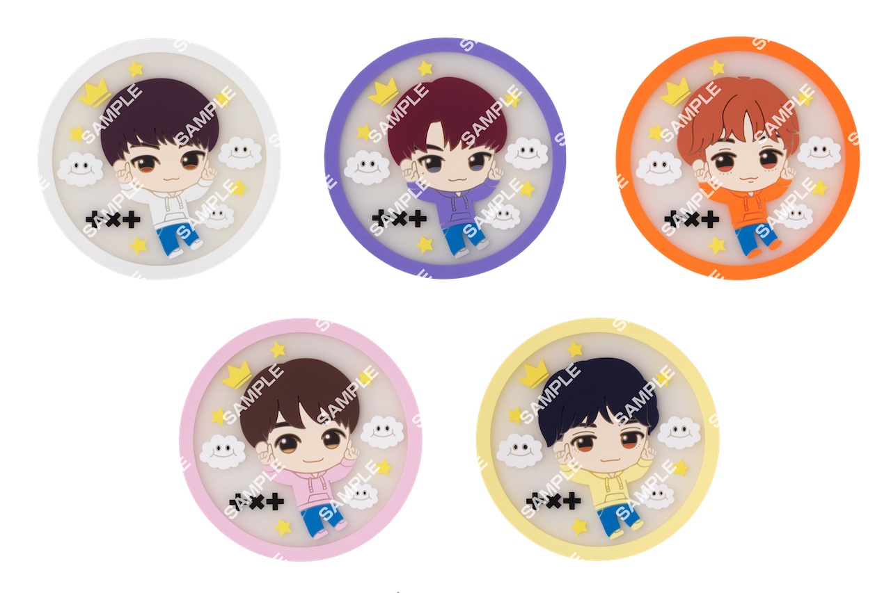 本商品は、ガシャポン(R)初登場の、グローバルに活躍する韓国5人組ボーイグループ「TOMORROW X TOGETHER」のクリアラバーコースター。イラストはガシャポンオリジナルデフォルメイラストを使用しており、メンバー5人がデビュー曲「CROWN」の衣装をまとったデザイン。