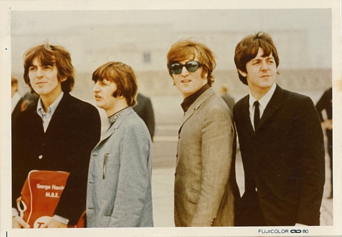 11時開演、10時半開場なので、家から1時間としても9時半に出れば間に合うのではないかと思っていたら、早朝5時にC君をはじめ数人の同級生ビートルズファンが迎えに来た。2人で行くのかと思ったら5人だったことに驚き、いくらなんでも5時は早いのでは、と思ったが、初めて見る動くビートルズに期待がいっぱいで居ても立っても居られなくなって家を出てしまったのだという。親の車で葛西まで乗せてもらい、東西線で九段下まで。九段会館の前を通って千代田公会堂まで行ったのが、さすがに誰もいない。時間もまだ6時だ。そこから4時間、お堀の水面を見つめ、日本武道館周辺を散歩してりして時間を潰していると、徐々に人が集まりだし、開場時間となった。先陣を切ってエレベーターで最上階に上がると、そこに物販コーナーが置かれ、机の上に多数のビートルズグッズが並べられている。ポスターに生写真、紙袋、缶バッジ等々。見るだけのつもりだったのに、周りに煽られて気が付いたらいくつかのグッズを手にしていた。ここからコレクター人生が始まった。