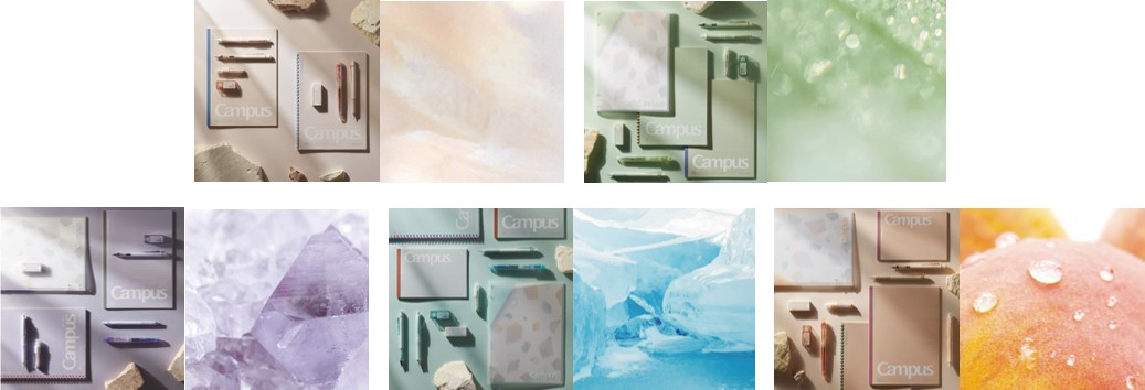 今回のコラボレーションでは、“ミネラルカラー“を採用。近年の混沌とした世の中を背景とする自然を求める嗜好性の高まりから、自然の色や素材をベースにすることで、癒し・安心を感じることのできるカラーラインアップとした。自然から抽出したような癒しカラーで、穏やかな気持ちになるステーショナリーのトータルコーデを提案する。