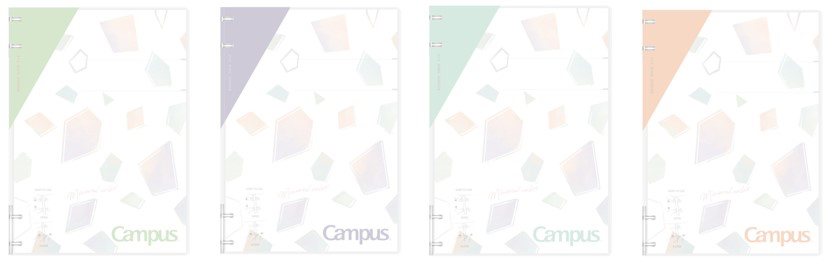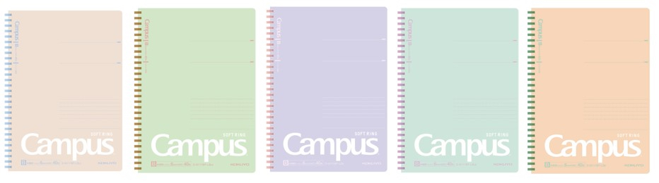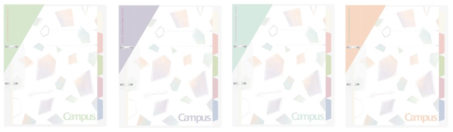 今回キャンパスブランドは、アイテム数を拡大して6種類が”ミネラルカラー”の仲間入り。昨年からの継続アイテム「パックノート」、「ソフトリングノート」に加え、近年の学びに適した「ノートのように使えるバインダー」「キャンパスノート ハーフサイズ」「はがせるノート型ルーズリーフ」「プリントもとじやすい2穴ルーズリーフバインダー」の6種全23品番と、昨年よりさらに拡充している。豊富なアイテムから好きな癒しのカラーで組み合わせて、トータルコーデを楽しもう。