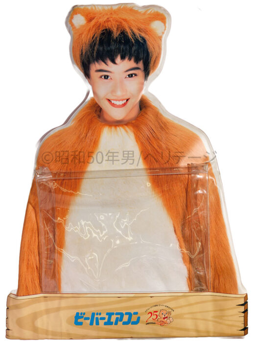 家電量販店の店頭で販売促進用として作られたランドリーバッグ。“伝説の少女”で人気絶頂の観月ありさがビーバーに扮するというコミカルながら激カワな出来映え。本人と制作陣の本気度を感じる。ランドリーバッグとしての実用性は「?」だが、ファンにはたまらない逸品だ。荒魂価格8,000円
