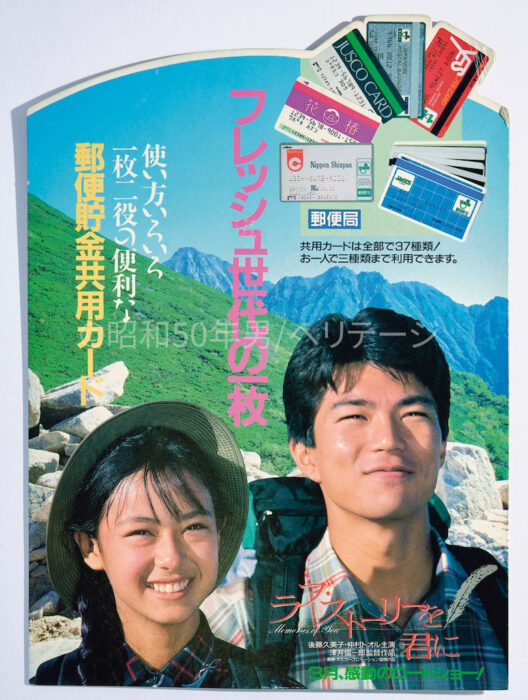 仲村トオルとW主演を果たした1988年公開の映画『ラブ・ストーリーを君に』の一場面を切り取った「ゆうちょ」の販促ADボード。荒魂価格3,500円