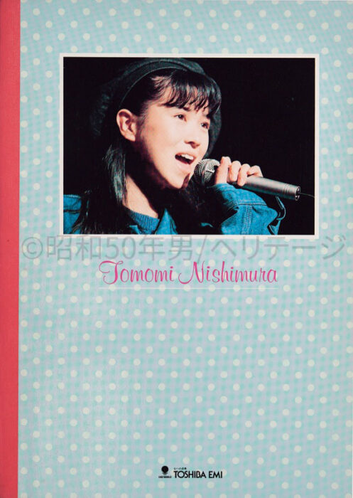 当時、西村知美が所属していた東芝EMIの販売促進用、非売品ノート。本人の写真自体が小さいため、非売品といえども評価は抑えめに。荒魂価格1,800円