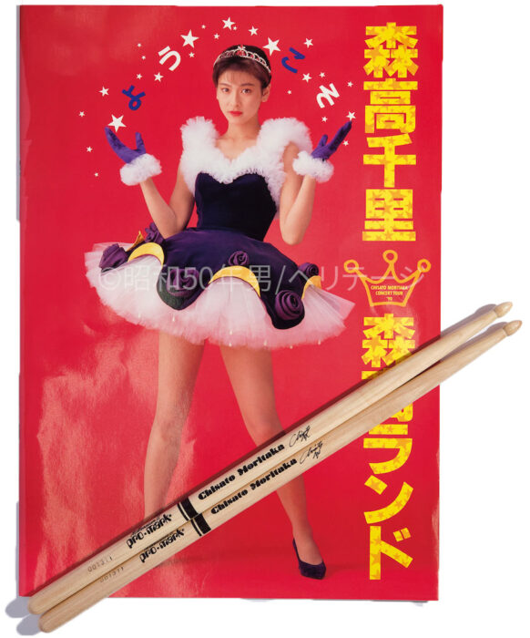 1989年のベストアルバム『森高ランド』発売を機に全国ツアーを開催した時のパンフレット。荒魂価格3万8,000円。コンサートグッズとして発売されたサイン入りのドラムスティックは超レア。荒魂価格1万9,000円