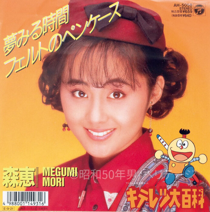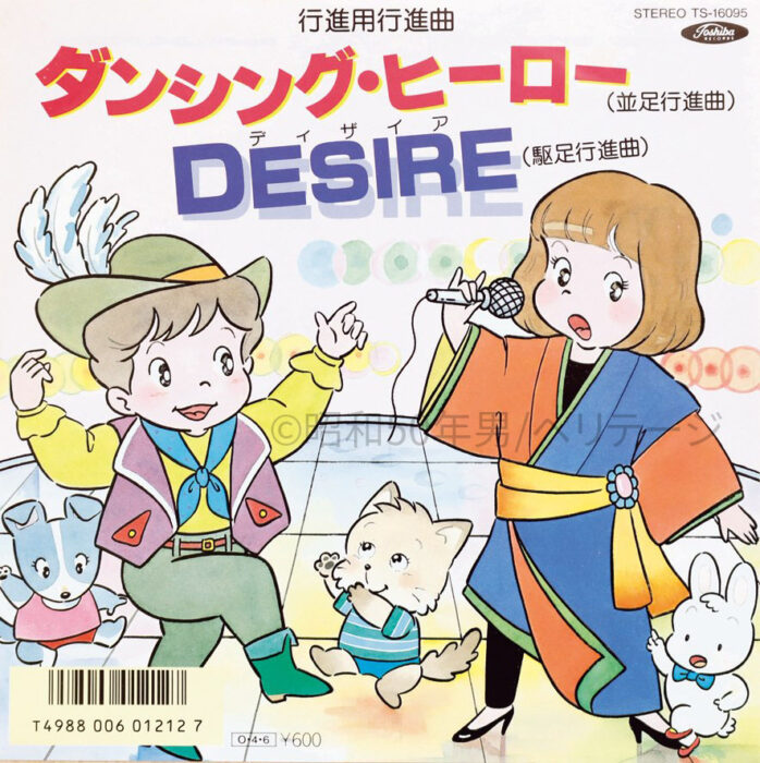 東芝EMIの行進曲レコは楽曲に寄せたかわいいイラストが特徴。「DESIRE」発売時の中森明菜風の衣装姿の女の子がキュート!