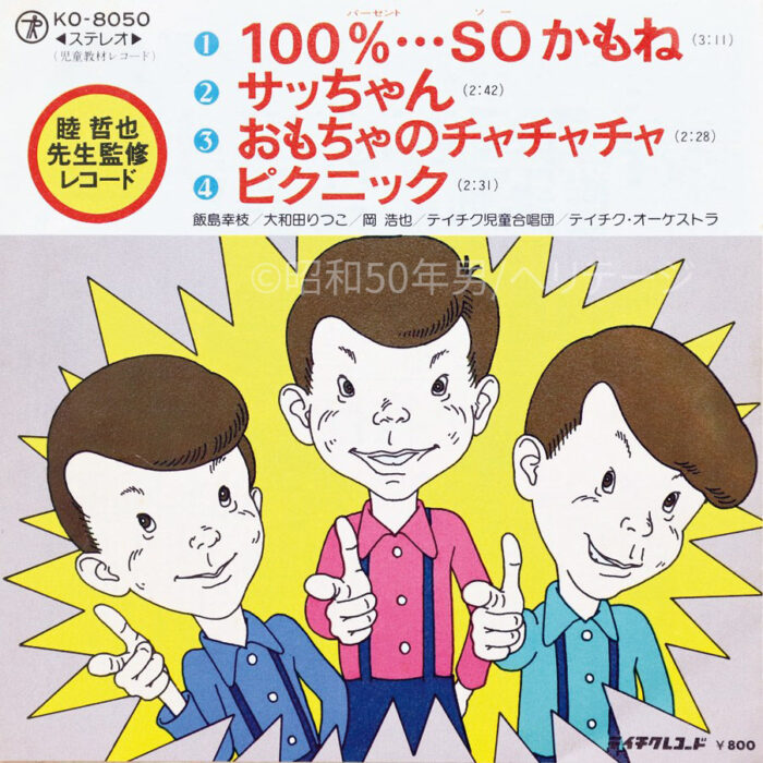 児童舞踏研究家の睦哲也先生監修による実用盤。体育のダンスや運動会の行進などに使用。ジャケのシブがき隊…似てねぇ!