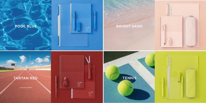 今回、定番品のノートや筆記具に加え、Spring-Summer限定品もご用意。コピー用紙や書類など穴をあけることなく簡単に抜き差しできてノートのように使える「クリップノート」をはじめ、キャンパスノートの罫線の幅と紙色に合わせた「修正テープ」、刃をスライド式で出し入れできる「携帯ハサミ」、コンパクトに折りたためる「ポータブルステープラー」などをラインアップ。カラーを組み合わせて楽しむことで、より自分らしさを表現できる。