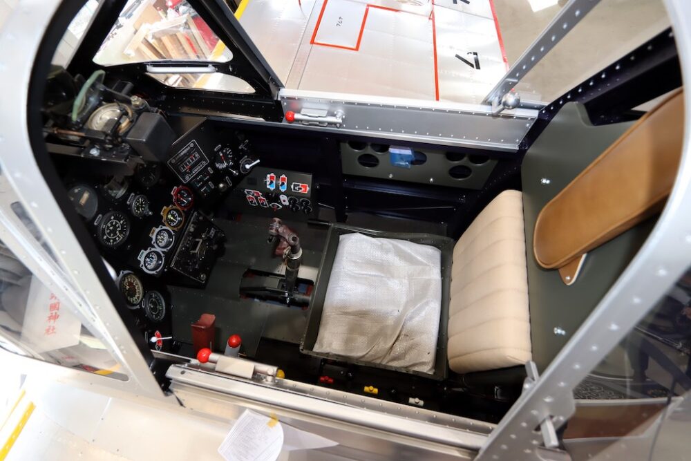 尾輪式のため目線はかなり上で、格納庫に保管されている今回は、まるで天井を見上げているよう。たとえればジェットコースターで発進直後に“カタカタ……”と頂点に向けて登っていく時のような目線の感覚だ。