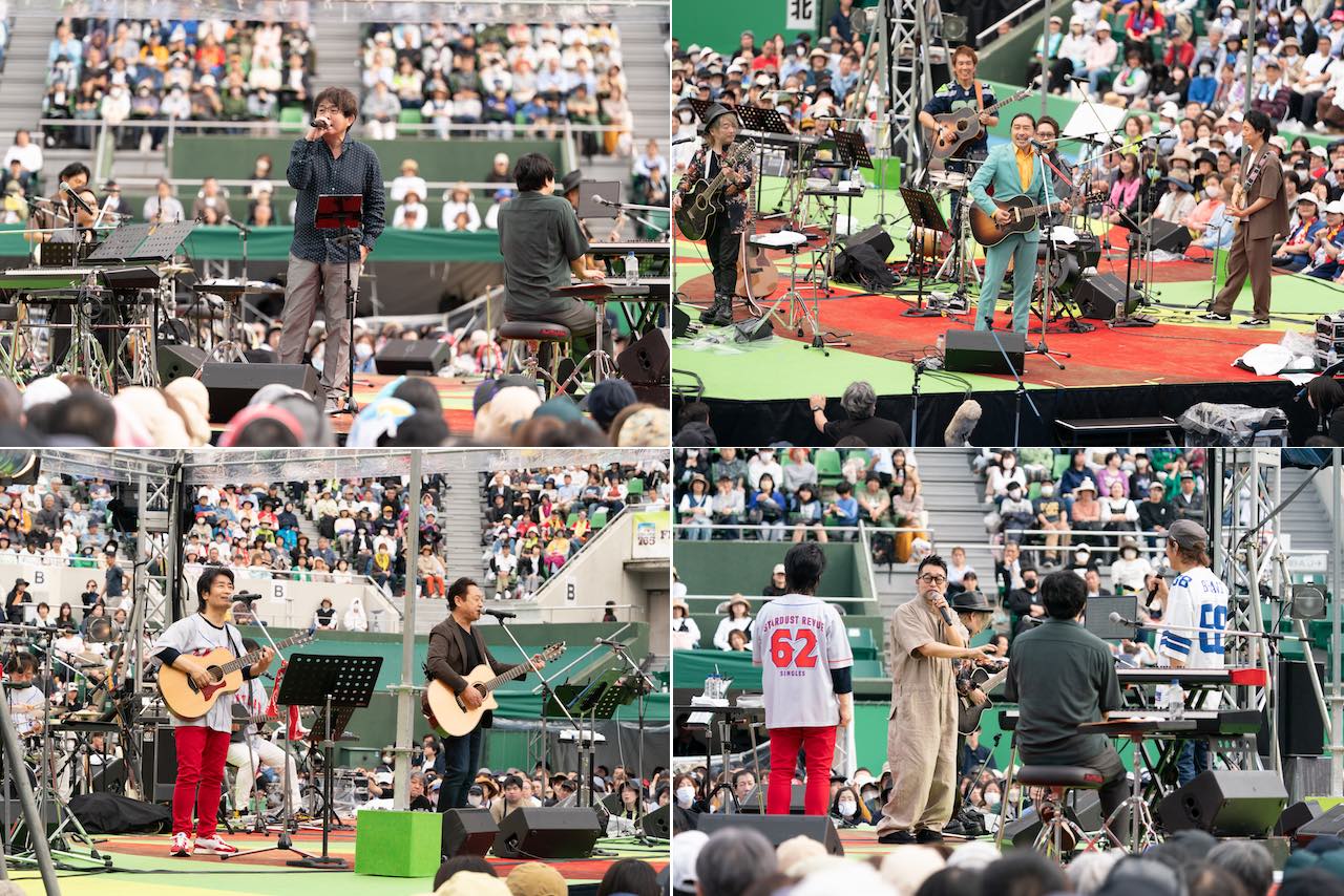 「ここから総力戦で!」と、イベント終盤は出演者全員による名曲揃いのステージへ。「BOYS ON THE RUN」(馬場俊英)、「ふたりの夏物語(杉山清貴&オメガトライブ)」、「Spirit Of Love(Sing Like Talking)」、「ガッツだぜ!!(ウルフルズ)」、「どんなときも。(槇原敬之)」、「愛の歌(スターダスト☆レビュー)」。個性と魅力にあふれたシンガー&サウンドメーカーたちのポップセンスを、スターダスト☆レビューのバンドサウンドと出演者総出でのコーラスで堪能できるという、これ以上ない贅沢な時間に観客は総立ちになって大盛り上がり♪