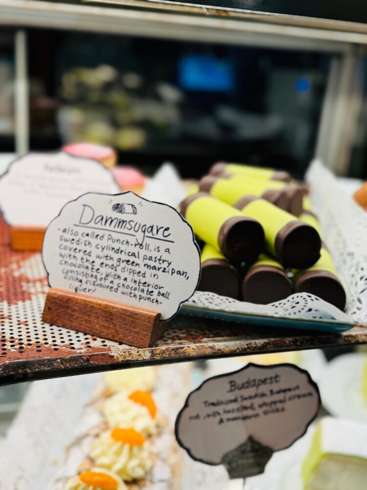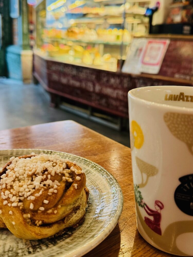 ガムラスタンを歩くと、フリーで頑張ってるデザイナーが共同でお店をやっていたり、外国人観光客のためのお土産屋さんも並ぶ。どのカフェに入っても甘いものがあなたを誘惑するでしょう。