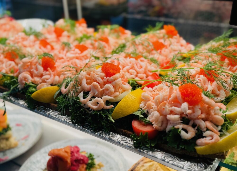 パンをメインに、マヨネーズや野菜、ハーブのディル、たっぷりのエビがオーソドックスなスタイル。スウェーデン人はエビが大好き。カフェでサンドイッチを注文したら、きっとエビが乗ってます。