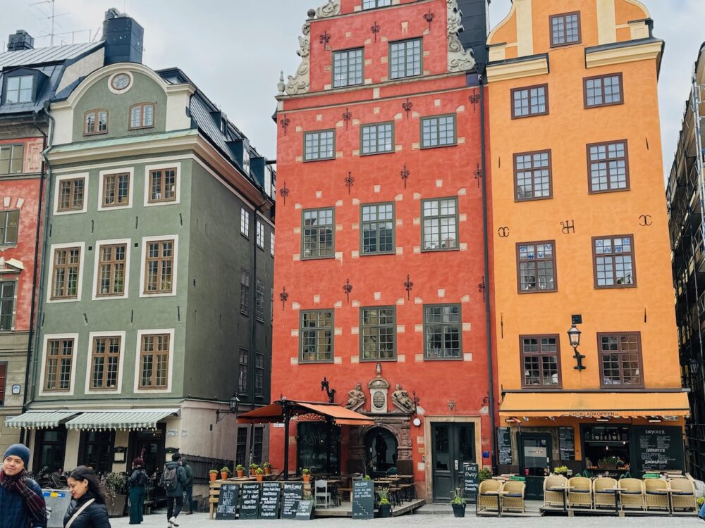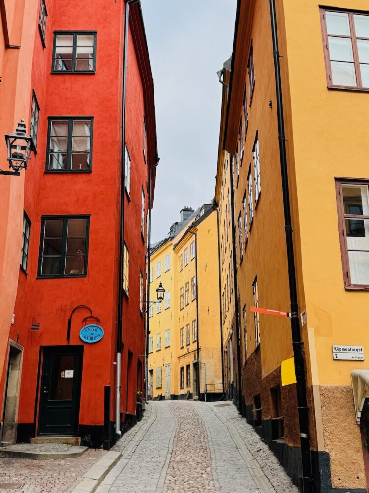 旧市街のガムラスタンは石畳が続きます。建物の色もとても暖かいものばかり。テーマパークような雰囲気もありますよね。