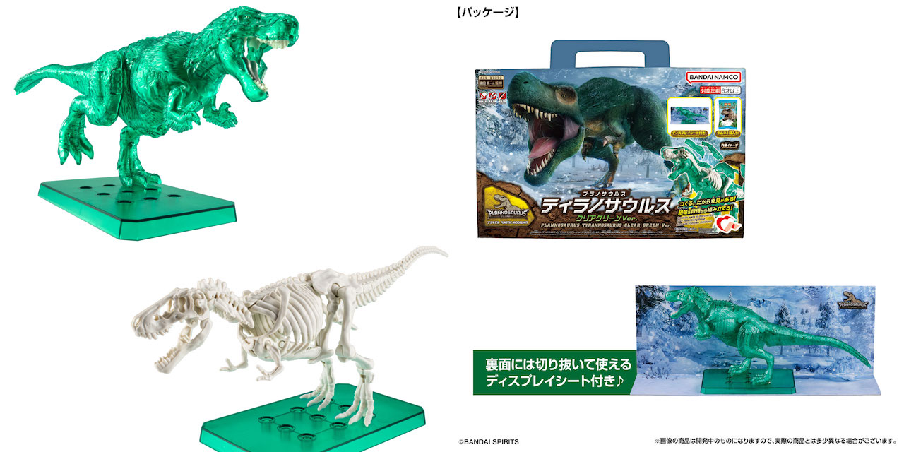 「プラノサウルス入り手さげBOX」は恐竜の体の構造や仕組みを“組み立てることで学ぶ”ことができる新たなプラモデルシリーズ「プラノサウルス」の手さげBOXが発売。恐竜の中でも人気が高い「ティラノサウルス」の限定クリアグリーンカラー! 外皮パーツが透けているため、中の骨格部分が見えやすくなっている。